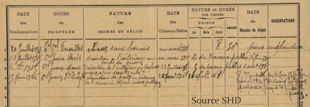 En résumé, la conjonction de la généralisation des commutations de peine pour les condamnés à mort et l’apparition d’un nombre important de condamnés, qui du fait de l’attribution de circonstances atténuantes échappaient dorénavant à la mort, a fait que la décision de suspension, peu courante en début de guerre, a, tout d’abord, touché de plus en plus de soldats, et ensuite a beaucoup enlevé de la crédibilité aux sentences prononcées, du fait de cette pratique. En même temps, le chercheur se heurte à une difficulté importante. Il ne doit pas s’arrêter au libellé de la peine d’emprisonnement et doit vérifier si cette dernière a bien été exécutée ou bien, si, après condamnation, tout de suite ou en différé, celui dont il suit le destin, a rejoint le front, comme si de rien n’était. Dans la suite des portraits qui vont être faits dans nos études mensuelles, nous allons présenter des exemples de ces parcours bien compliqués à suivre.