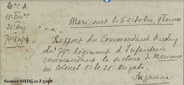 Le 5 octobre 1914, le commandant Oudry du 79e régiment d’infanterie rédigeait le rapport suivant :